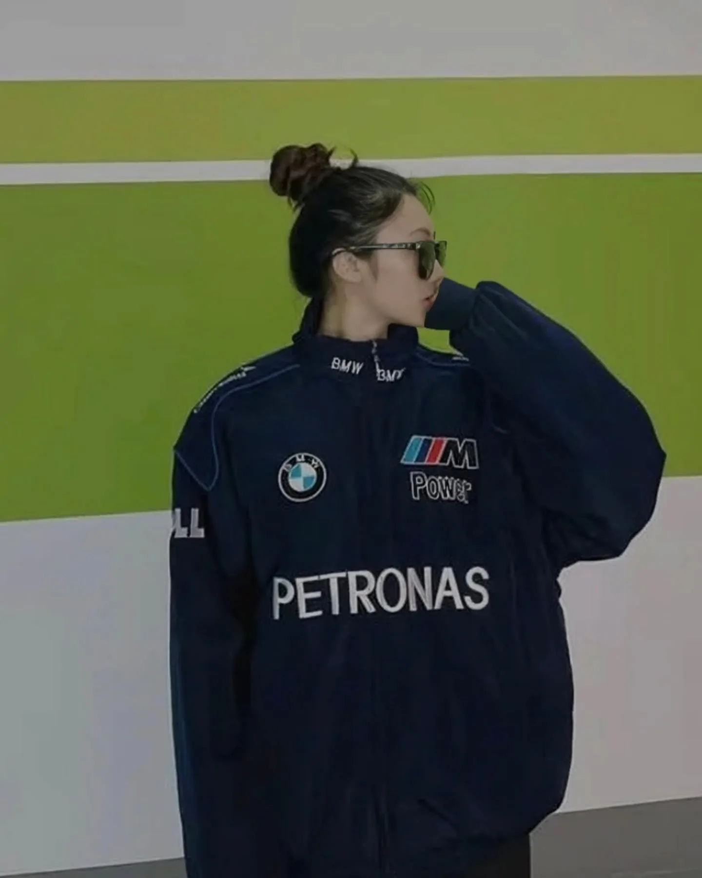 Crafted from premium material with a relaxed, oversized fit, it boasts detailed embroidered BMW, M Power, and Petronas branding on the front. The highlight? A bold, large BMW logo emblazoned across the back, giving off serious pit-lane energy. Whether you’re hitting the streets or revving up your aesthetic, this jacket brings performance power into your everyday look.