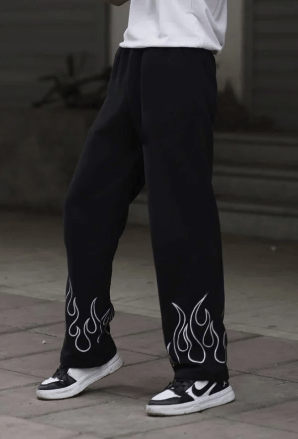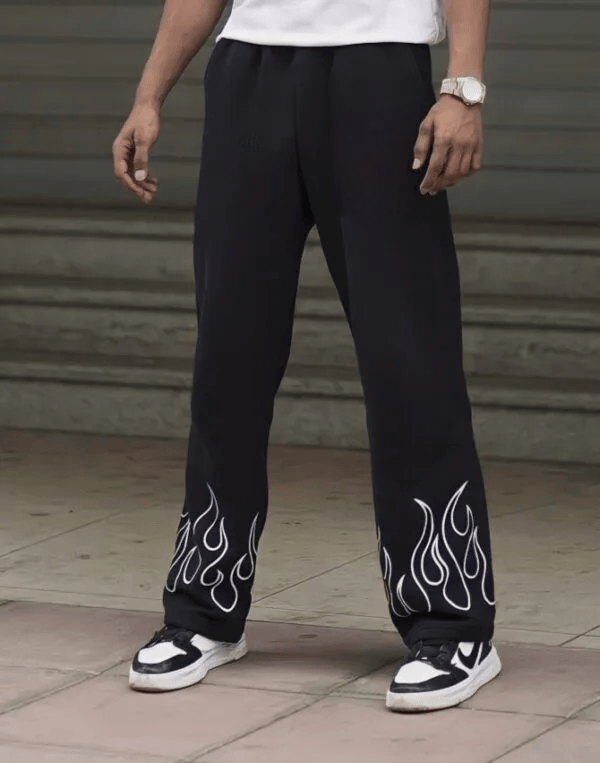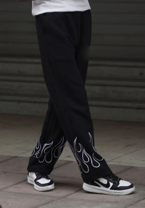 Doodel Flame-Print Black Sweatpants – GenZ Street Edition