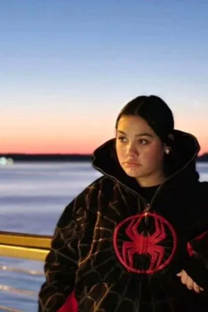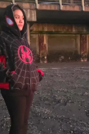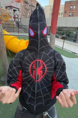 Unleash your inner Spider-Man with the ultimate tribute to Miles Morales. This full-zip cosplay hoodie combines streetwear style with superhero swagger. Crafted in black with bold red accents, the hoodie features a webbed design throughout and a striking red spider emblem on the chest — instantly recognizable to any Spider-Verse fan.